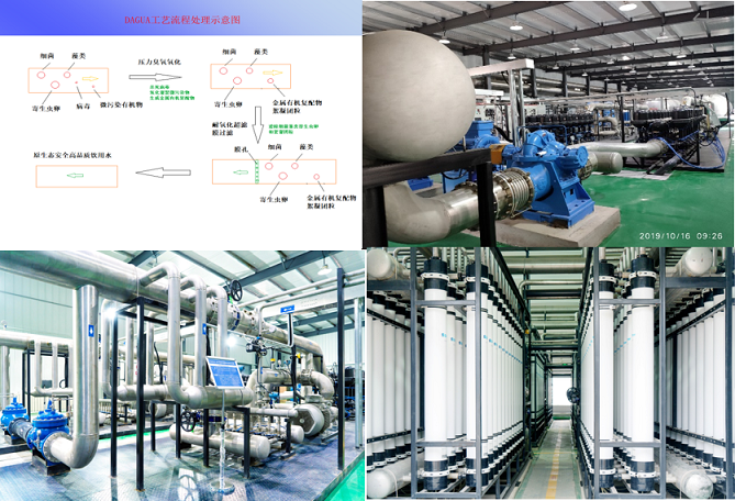 DAGUA臭氧嫁接超滤膜工艺2019年5月已在天津逸仙园三万吨建成投产,占地1千平方、建设周期150天,连续稳定运行18个月数据显示:系统工艺运行吨水成本0.26元,当班1人手机监控运行,水资源回收率98%,水源为滦河水及南水北调水,进水浊度5-50 NTU,出水浊度为0.01NTU,净水过程6分钟,出厂水优于国家饮用水最新2018标准及满足国家提出2020高品质饮用水标准。在北美国地区已经有10多个项目连续安全稳定生态运行15年以上。达到2020生态高品质饮用水处理标准。2016年被国际水协会推荐为高品质饮用水处理示范应用成熟技术,2017年被列入科技部建设部“十三五”饮用水重大科技专项。2020年被水利部列入成熟适用生态饮用水处理技术科技成果颁布实施。2014 版行业给水处理工程设计标准升级改版2020版。获得较多市政设计院认可及设计应用,DAGUA技术得到科技部、环保部、水利部等领导及较多院士的关注支持。